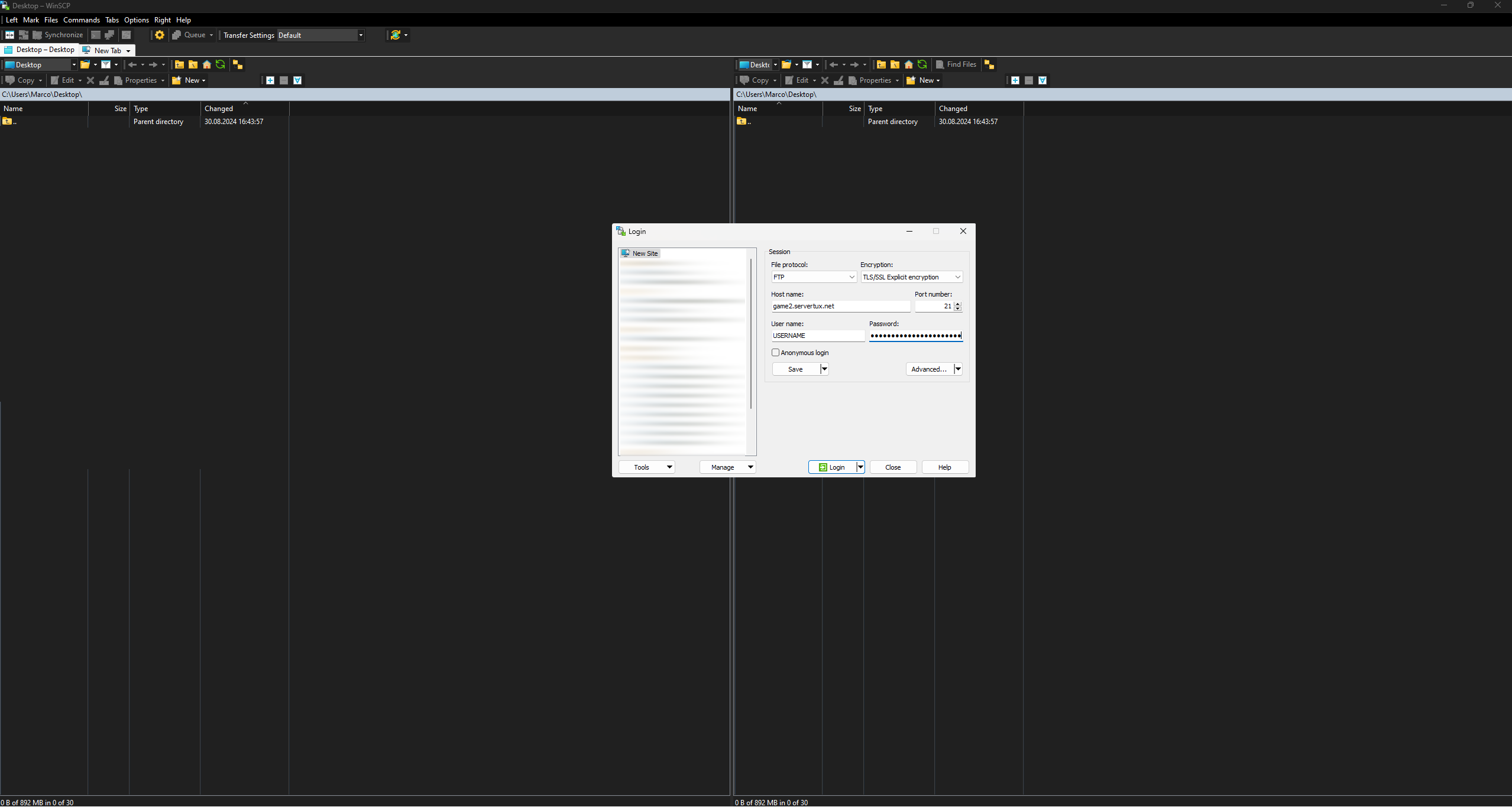After selecting and installing an FTP client, you will need the IP address of the FTP server, as well as your username and password. You can find this information in the GSM under the "FTP" tab.