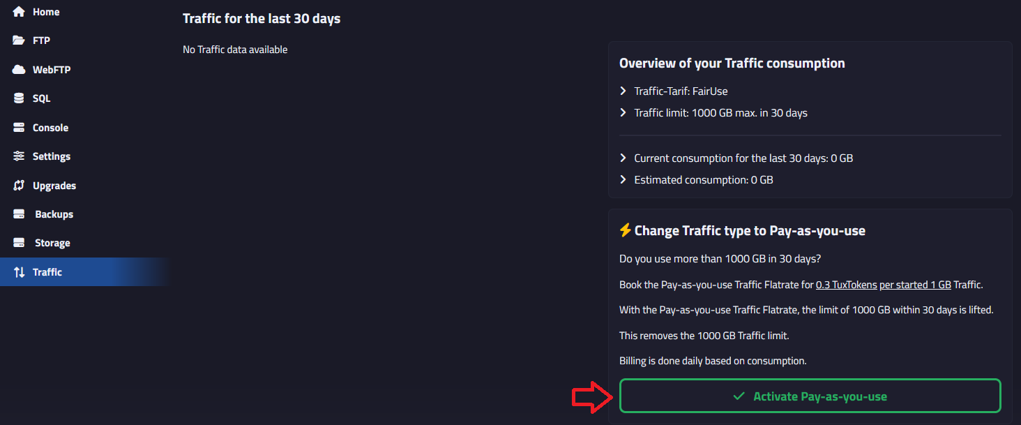 The Pay-As-You-Use Traffic Flatrate allows for flexible billing based on the actual traffic used.